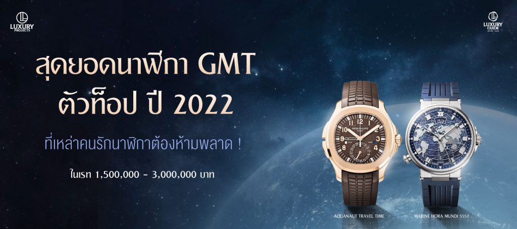 พาชมสุดยอดนาฬิกา GMT ตัวท็อป ปี 2022 ! ใครที่กำลังมองหานาฬิกา GMT ตัวท็อปราคาหลักล้าน ต้องห้ามพลาดกับโพสต์นี้ เพราะเราได้รวบรวมมาไว้ให้แล้ว บอกเลยว่าแต่ละเรือนต้องใช้ความประณีต และฝีมือขั้นสูงในการทำ รับรองว่าคุ้มค่ากับราคาแน่นอน 1. Patek Philippe Aquanaut Travel TimeRef.5164R-001 Aquanaut ถือเป็นหนึ่งในรุ่นยอดฮิตของ Patek Philippe ที่ได้เปิดตัวมาตั้งแต่ปี 1997 และเป็นอีกหนึ่งรุ่นที่เหล่าคนรักนาฬิกาต่างใฝ่ฝันอยากได้มาไว้ครอบครอง โดยรุ่นที่คุณเห็นอยู่นี้คือ Aquanaut Travel Time ที่มาพร้อมกับฟังก์ชันพิเศษ ‘Travel Time’ ที่สามารถบอกเวลา 2 ไทม์โซน โดยรุ่นนี้จะใช้รูปแบบการบอกเวลาที่ 2 ด้วยเข็มกลางฉลุโปร่ง หมุนรอบละ 12 ชั่วโมง ขณะที่ตัวดีไซน์ยังคงเอกลักษณ์แบบดั้งเดิมไว้อย่างครบถ้วน ไม่ว่าจะเป็น ลายตารางผิวนูนบนสายและบนพื้นหน้าปัดรูปทรงแปดเหลี่ยมโค้งมน แต่ในรุ่นนี้จะมาพร้อมกับสีช็อกโกแลต ที่เข้าคู่กับตัวเรือน โรสโกลด์ 18K เป็นอย่างดี พร้อมกันน้ำได้ลึก 120 เมตร ด้วยอัตลักษณ์ที่ชัดเจน […]