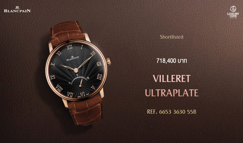 โดยรุ่นที่คุณเห้นอยู่นี้มีชื่อว่า Blancpain Villeret Ultraplate ซึ่งจะมีความพิเศษกว่าคอลเลกชัน Villeret ทั่วไป ตรงที่มีความบางระดับ Ultra Slim ซึ่งบางกว่ารุ่นทั่วไปมาก ๆ แต่นั่นก็ต้องอาศัยความพิถีพิถัน และใช้กรรมวิธีในการผลิตที่ซับซ้อนกว่ารุ่นอื่น ๆ