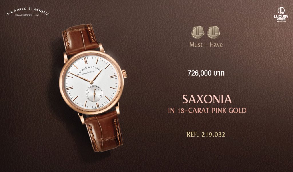 คอลเลกชัน Saxonia จัดได้ว่าเป็นหนึ่งในตัวแทนนาฬิกา Non-Sport ที่เรียบหรู คุณภาพการผลิตอันดับต้น ๆ ของโลก โดยนาฬิกาที่คุณเห็นอยู่นี้ถูกรังสรรค์ขึ้นมาอย่างพิถีพิถัน ด้วยตัวเรือน Pink Gold ที่ถูกขัดเงามาอย่างดีจนเป็นประกายสวยงามเมื่อแสงตกกระทบ