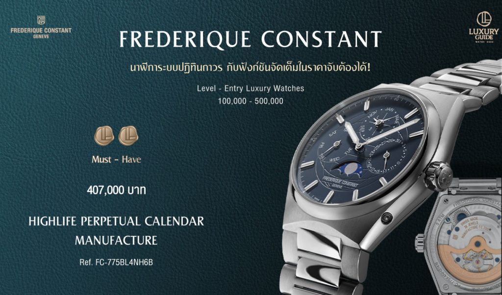 รุ่น Highlife Perpetual Calendar Manufacture ถือเป็นหนึ่งในรุ่นนาฬิกาที่คลาสสิกสุดของแบรนด์ Frederique Constant ที่อยู่มานานกว่า 20 ปี โดยจุดเด่นของคอลเลคชั่นนี้คือการมีระบบปฏิทินถาวร ที่สามารถแสดงค่าได้อย่างแม่นยำตั้งแต่ วัน เดือน ปีอธิกสุรทิน วันที่ และวันข้างขึ้นข้างแรมได้อย่างครบถ้วน และชัดเจน แถมยังสำรองพลังงานได้กว่า 38 ชั่วโมง